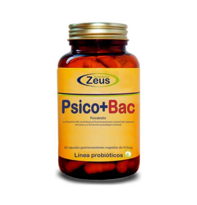 Psico + Bac (antiguo Psicobiotic) de laboratorios Zeus está compuesto por una mezcla de probióticos y de productos especialmente seleccionados, como el Hipérico, el Triptófano y la Melatonina, para ayudar en casos de depresión y ansiedad.